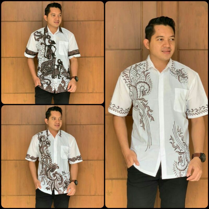Best Seller Pakaian di Kabupaten Bima Kemeja Putih Motif Batik Baju Formal Kemeja Pria Lengan Pendek Kemeja Bali. dari Kedai Batik Shohir Kab. Pekalongan