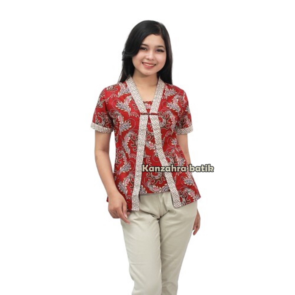 Best Seller Pakaian W di Kabupaten Flores Timur Blouse Batik / Atasan Batik Wanita Seragam Batik Kantoran Batik Big Size S-m-l-xl-xxl-3l-4l-5l dari Kanzahra Batik Kota Pekalongan
