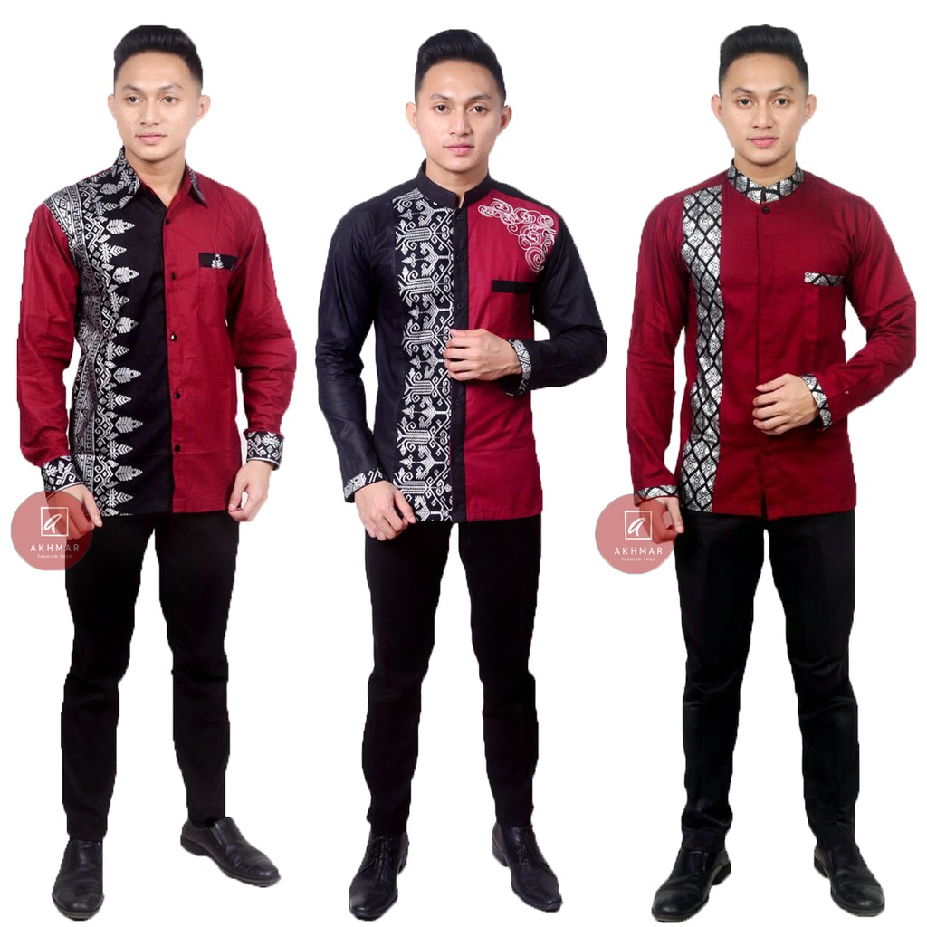 Name: Batik Kombinasi Kemeja Batik Pria Lengan Panjang Warna Maroon Ukuran M L Xl Xxl Batik Hrb026