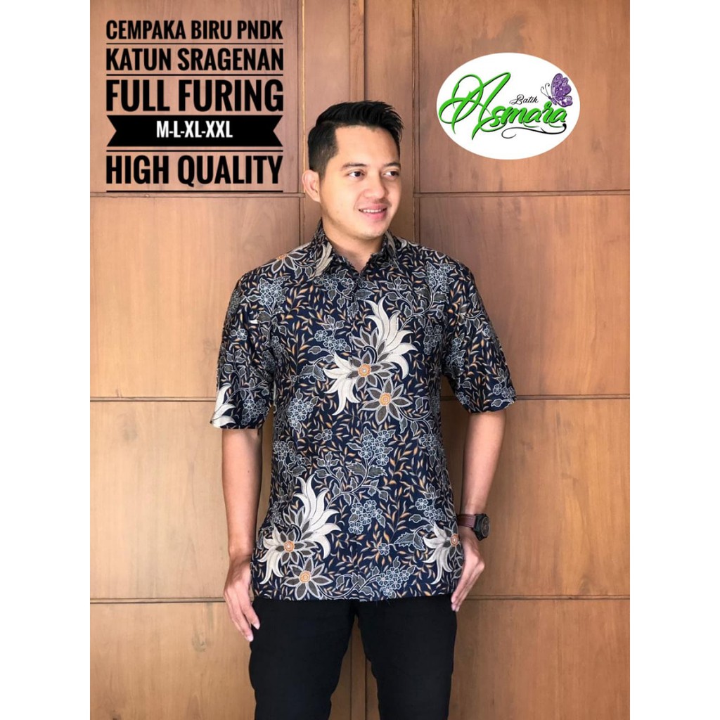 Name: Batik Solo Cempaka Biru Pendek Kemeja Pria Katun Halus Sragenan Full Furing